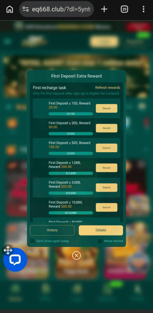 Referral Program — Invite your friends to join EQ668 and earn bonuses for every successful referral. The more friends you bring in, the more you earn from the referral program.